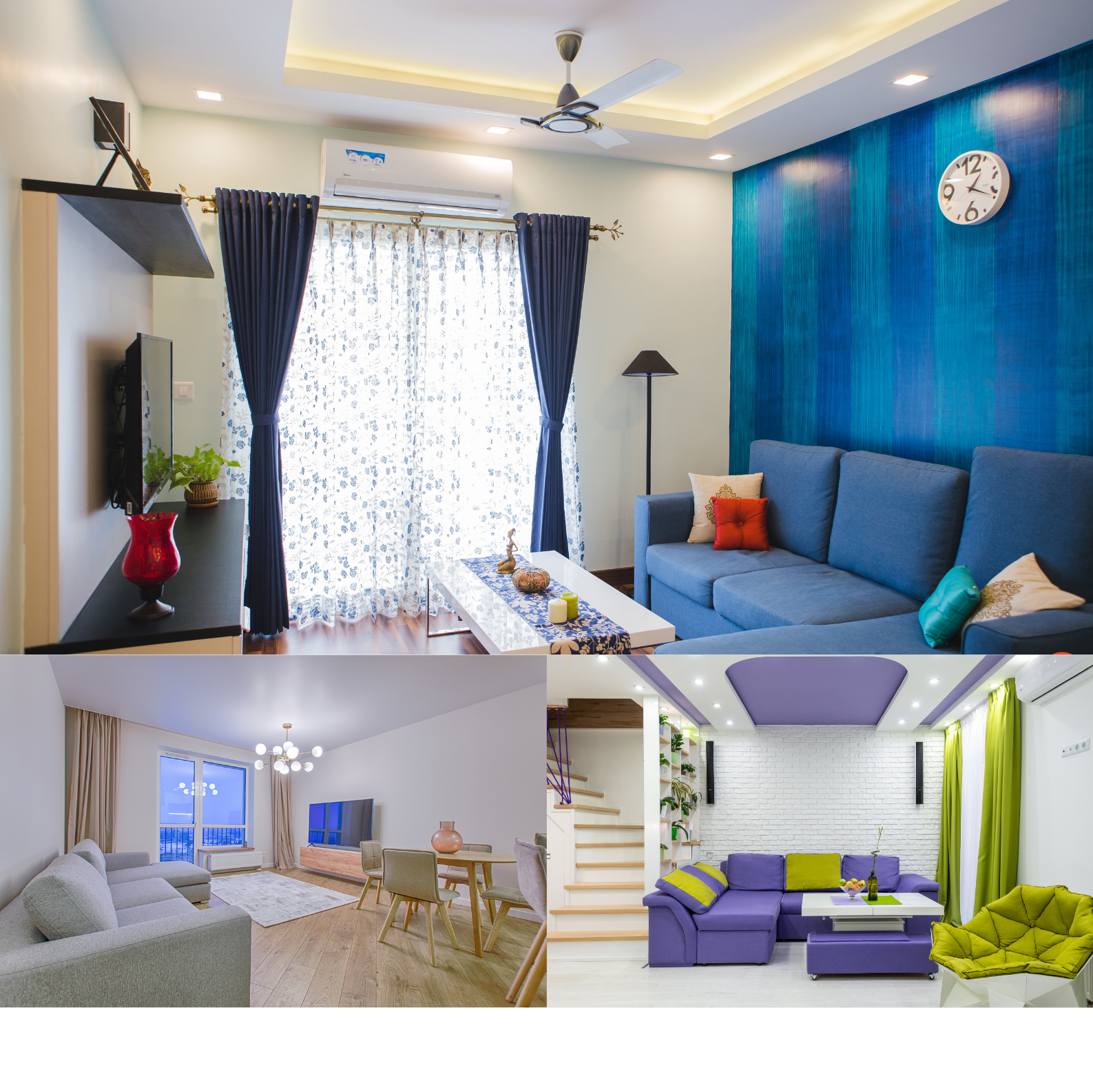 Even a small corner space can be converted into an exciting gallery wall. It will be indeed eye-catching if you asymmetrically display your collections of paintings, drawings and photographs. Your corner space can exhibit your own artworks in a fascinating way and enhance the creative outlook of your living room.