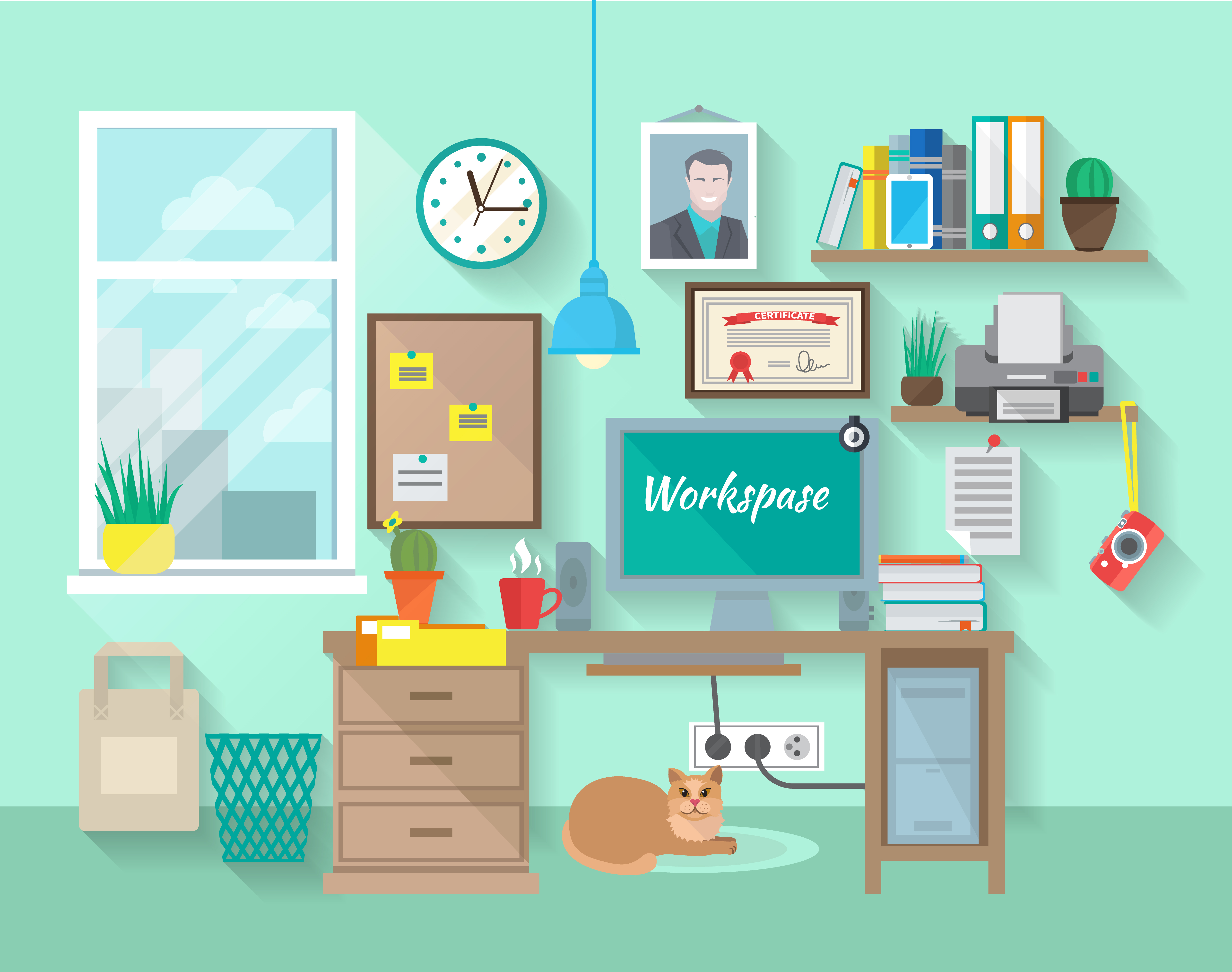 Make your work area calm and soothing which allows to lower your stress level and helps you to stay more focused. You can put some indoor plants on your desk or place your favorite showpieces around your desk. You can also set up your worktable in front of window to stay in touch with the nature.